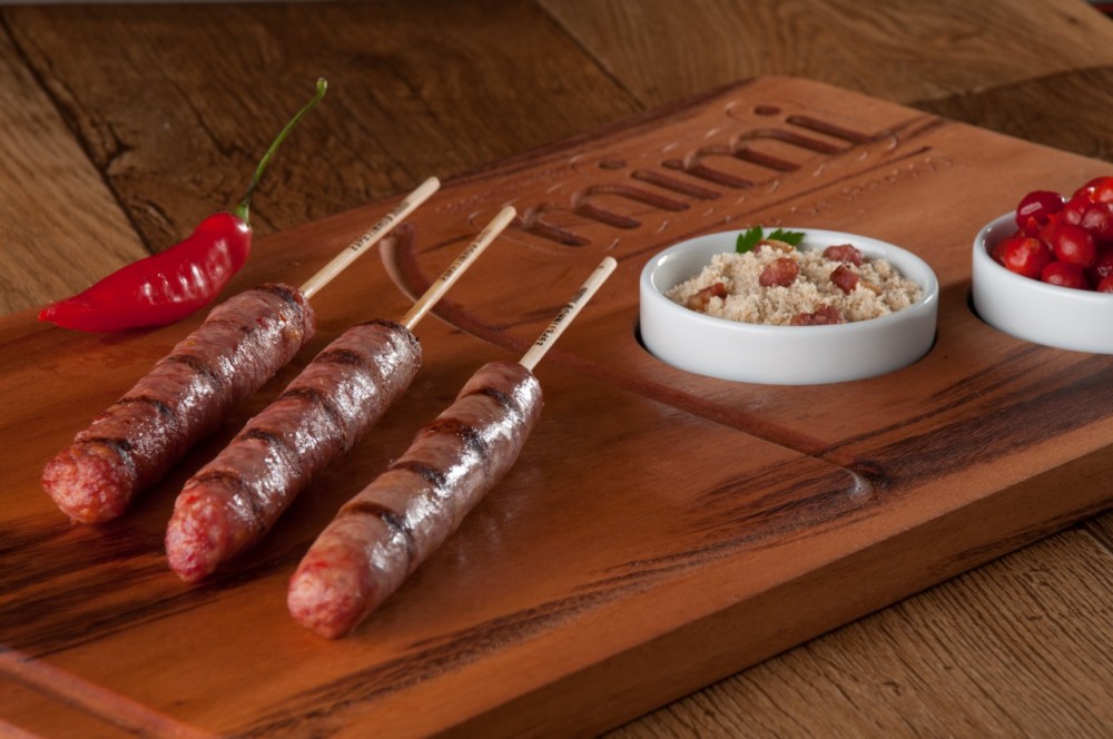 Espeto de linguiça suína congelado, deliciosamente saborosa, tempero exclusivo Mimi, maciez incomparável, ideal para apreciar em seus Melhores Momentos!